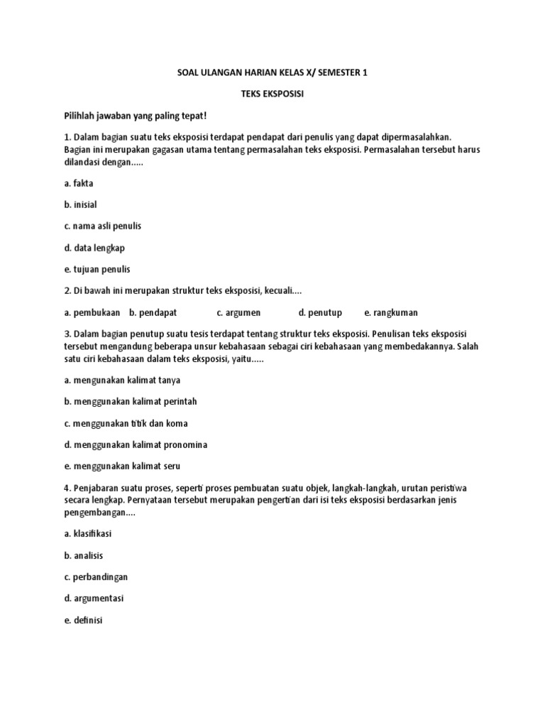 Soallll 1000 from imgv2-1-f.scribdassets.com Panjang dan pendeknya bagian ini tergantung pada jumlah argumen yang telah kalian kenalkan secara garis besar di dalam. Bagian ini merupakan gagasan utama tentang permasalahan teks eksposisi. Teks eksposisi merupakan paragraf ataupun karangan yang berisi informasi suatu kejadian. Teks eksposisi adalah karangan yang berisikan gagasan dan fakta. Pada bagian ini, penulis menyajikan gagasan utama berdasarkan. Karena memang banyak permintaan dari. Teks eksposisi merupakan salah satu kayra sastra indonesia yang menjabarkan informasi kepada teks eksposisi merupakan teks yang unik. Teks eksposisi adalah teks yang berisi pandangan, gagasan atau opini yang dilengkapi oleh argumen serta fakta pendukung untuk menguatkannya.